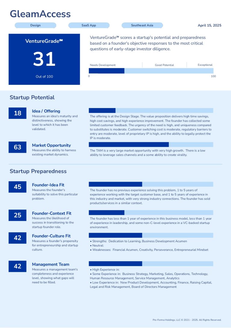 GleamAccess is an AI-driven platform revolutionizing the beauty, health, and wellness industry. We provide a seamless booking system for beauty clinics, salons, spas, health and wellness centers, with flexible payment options. Our AI-powered personalization analyzes user preferences and history to recommend the most effective treatments. We also feature an AI Skin Scanner which enables real-time skin analysis and progress tracking. For businesses, we optimize bookings and deliver AI-driven business insights to maximize revenue and boost customer retention. Our mission is to make beauty, health, and wellness more accessible, affordable, and convenient in a fast-growing but underserved market.